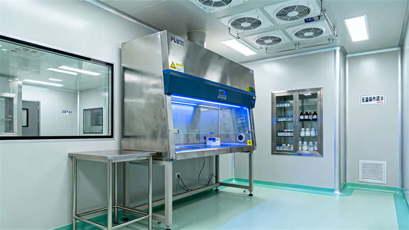 室內(nèi)空間劃分清晰,入口風(fēng)淋室作為潔凈第一道防線,搭配專屬衣柜區(qū),助力人員規(guī)范進(jìn)入;核心生產(chǎn)區(qū)以通透玻璃隔斷劃分,搭配高效過濾設(shè)備,營造潔凈通透的操作環(huán)境,操作人員身著專業(yè)潔凈服,盡顯規(guī)范作業(yè)氛圍。輔助區(qū)域同樣注重細(xì)節(jié),物料暫存間采用防塵物料架與傳遞窗設(shè)計(jì),確保物料潔凈存儲(chǔ)與轉(zhuǎn)運(yùn);無菌實(shí)驗(yàn)室配置專業(yè)安全柜與試劑柜,滿足高潔凈等級(jí)操作需求;潔凈走廊通過清晰標(biāo)識(shí)引導(dǎo)動(dòng)線,連接各功能區(qū)域,提升空間流轉(zhuǎn)效率;空調(diào)機(jī)房作為動(dòng)力核心,設(shè)備布局規(guī)整,保障整體潔凈系統(tǒng)穩(wěn)定運(yùn)行。?