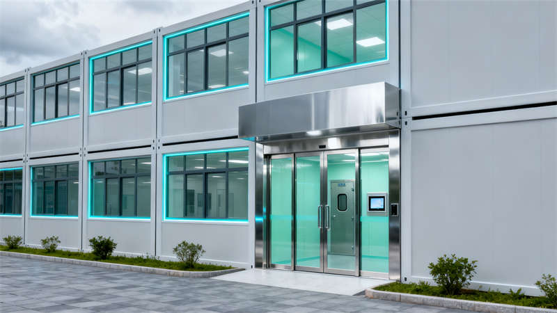 本設(shè)計(jì)以潔凈需求為核心,兼顧功能實(shí)用性與空間協(xié)調(diào)性,打造適配多場景的無塵環(huán)境。外觀上,建筑主體采用簡潔的淺灰色調(diào),搭配密封性能優(yōu)良的玻璃外窗與感應(yīng)式自動(dòng)門,既凸顯工業(yè)質(zhì)感,又從源頭減少外界污染侵入。?